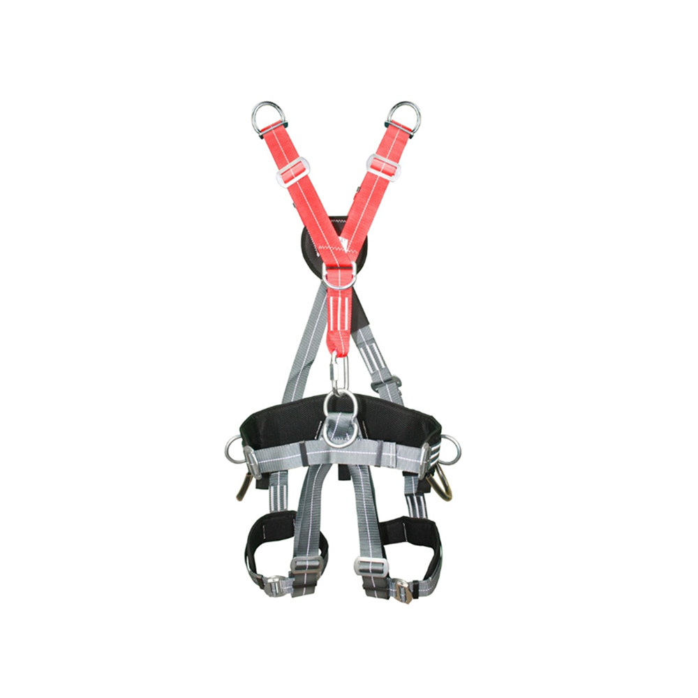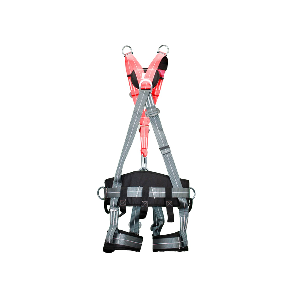 Страховочная привязь парашютного типа с наплечными и набедренными лямками которые регулируется самофиксирующимися пряжками, тремя элементами крепления стропа для страховки (на груди, спине и плечах) и тремя - для удержания и позиционирования(на поясе).